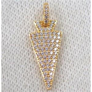 copper arrowhead pendant paved zircon, gold plated, approx 16x47mm