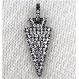 copper arrowhead pendant paved zircon, platinum plated, approx 16x47mm