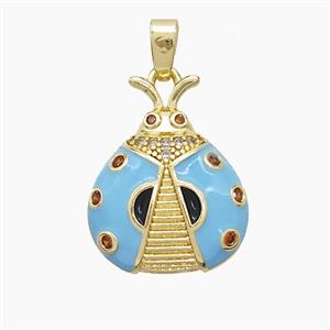 Copper Ladybug Pendant Pave Zirconia Blue Enamel Gold Plated, approx 15-19mm