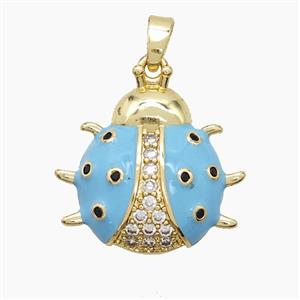 Copper Ladybug Pendant Pave Zirconia Blue Enamel Gold Plated, approx 19mm