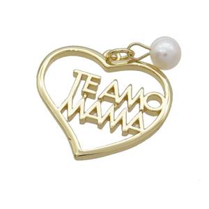 • Copper Hear Pendant With Pearl Teamo MAMA Gold Plated, approx 24mm, 6mm