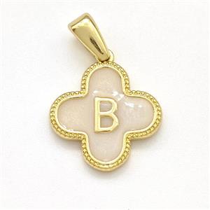 Copper Clover Pendant Letter-B Painted Gold Plated, approx 15mm