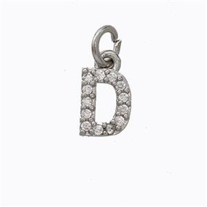 Copper Pendant Pave Zirconia Letter-D Platinum Plated, approx 6-9mm
