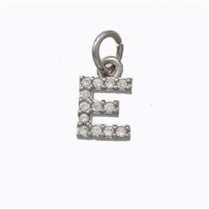 Copper Pendant Pave Zirconia Letter-E Platinum Plated, approx 6-9mm