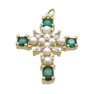 Copper Cross Pendant Pave Pearlized Glass Gold Plated, approx 21-27mm
