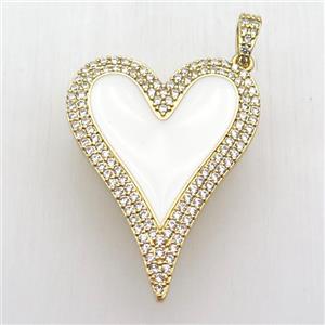 copper heart pendant paved zircon, white enameling, gold plated, approx 30-40mm