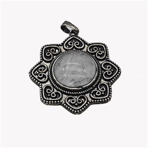 Alloy Flower Pendant Pave Opalite Antique Silver, approx 18mm, 40mm