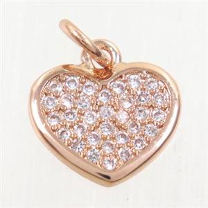 copper heart pendant paved zircon, rose gold, approx 11-13mm