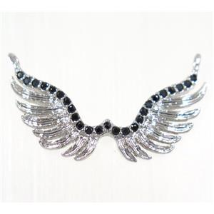 copper angel wing pendant paved zircon with 2loops, black plated, approx 11x24mm