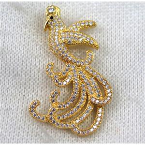 copper peacock pendant paved zircon, gold plated, approx 28-45mm