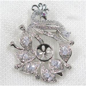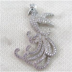 copper peacock pendant paved zircon, platinum plated, approx 28-45mm
