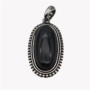 Alloy Oval Pendant Pave Black Obsidian Antique Silver, approx 13-30mm, 25-35mm