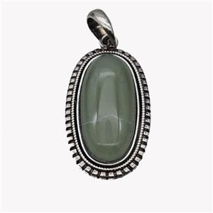 Alloy Oval Pendant Pave Green Aventurine Antique Silver, approx 13-30mm, 25-35mm