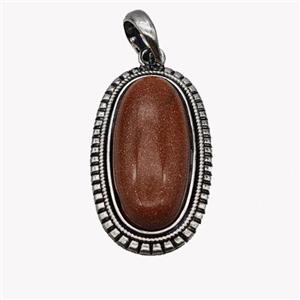 Alloy Oval Pendant Pave Golden Sandstone Antique Silver, approx 13-30mm, 25-35mm