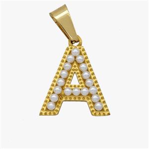 Stainless Steel Pendant Pave Pearlized Resin Letter-A Gold Plated, approx 10-15mm