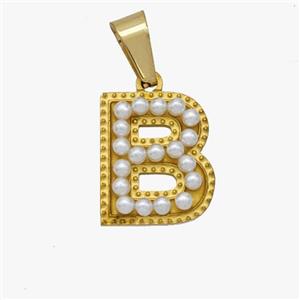 Stainless Steel Pendant Pave Pearlized Resin Letter-B Gold Plated, approx 10-15mm