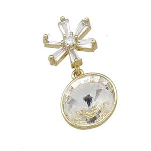 Copper Flower Pendant Pave Crystal Glass Gold Plated, approx 25mm