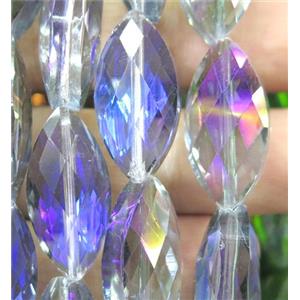 Chinese crystal bead, faceted, white AB color, approx 18x25mm, 15pcs per st