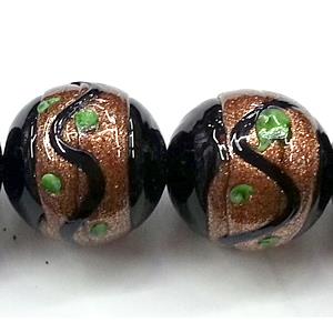 glass lampwork beads with goldsand, round, flower, black, 20mm dia