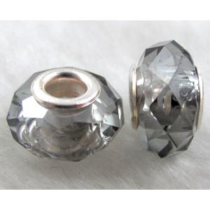 crystal glass beads, faceted rondelle, grey, approx 14mm dia, 8mm thin, hole: 4.7mm