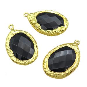 black Crystal Glass teardrop pendant, gold plated, approx 22-30mm