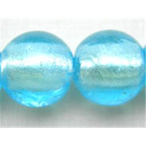 Lampwork Glass Beads with silver foil, round, aqua, 10mm dia