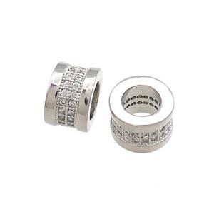 • Copper Tube Beads Pave Zircon Large Hole Platinum Plated, approx 8mm