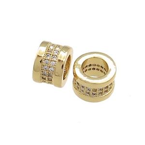 • Copper Rondelle Beads Pave Zircon Large Hole Gold Plated, approx 8mm