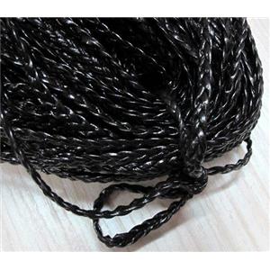 • PU leather cord, braided, flat, black, approx 6mm wide