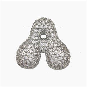 Copper Letter-V Pendant Micropave Zirconia Platinum Plated, approx 16-23mm, 3-5mm hole