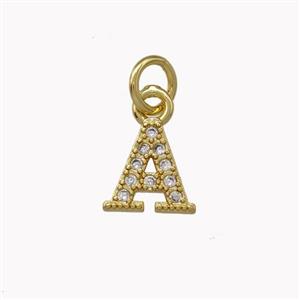 Copper Letter-A Pendant Pave Zirconia Gold Plated, approx 5-8mm