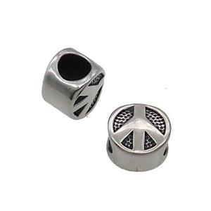 Stainless Steel Coin Beads Peace Sign Large Hole Antique Silver, approx 10mm, 5mm hole