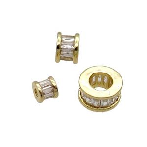 Copper Rondelle Beads Pave Zircon Large Hole Gold Plated, approx 3.5mm