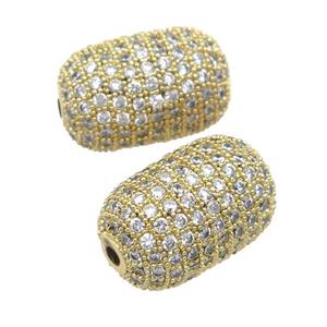 copper barrel beads pave zircon, hollow, gold plated, approx 15-21mm