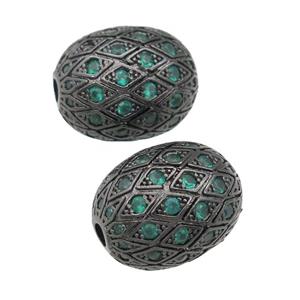 copper oval beads pave zircon, hollow, black plated, approx 16-19mm