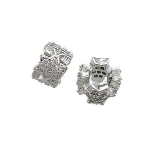 Copper Hexagon Beads Pave Zircon Platinum Plated, approx 6mm