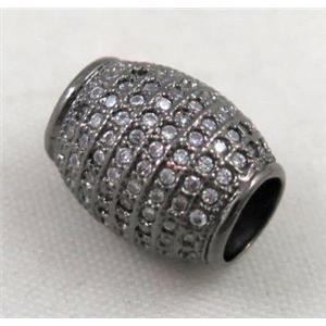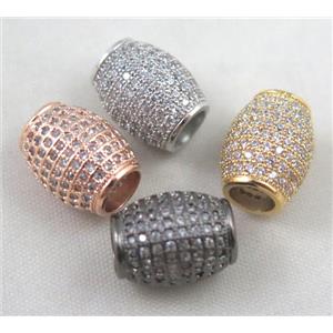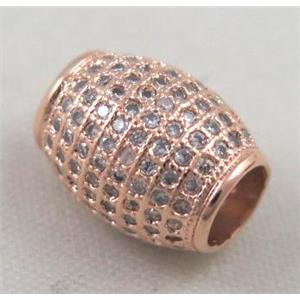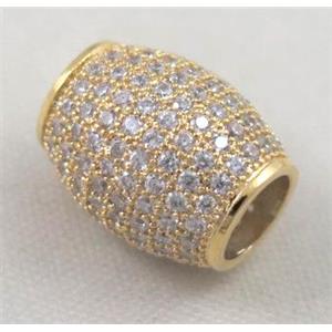 copper barrel beads pave zircon, gold plated, approx 10x12mm, 5mm hole
