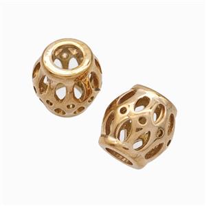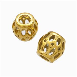 Titanium Steel Barrel Beads Large Hole Hollow Flower Gold Plated, approx 9-10mm, 4mm hole
