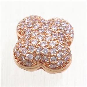 copper four-leaf Clover beads paved zircon, rose gold, approx 12mm