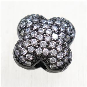 copper clover beads paved zircon, black plated, approx 12mm dia