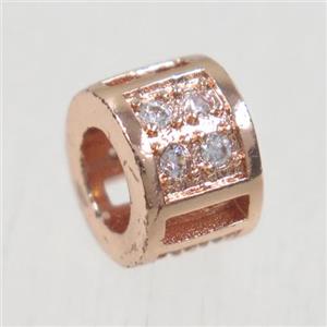 European style copper beads paved zircon, tube, rose gold, approx 7-11mm, 5mm hole