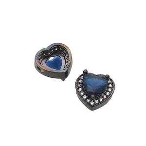 Copper Heart Beads Pave Zircon Platinum Plated, approx 8-10mm