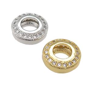 • copper rondelle beads pave zircon, large hole, mixed, approx 7mm, 4mm hole