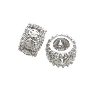 • Copper Rondelle Beads Pave Zircon Emoji Large Hole Platinum Plated, approx 10mm