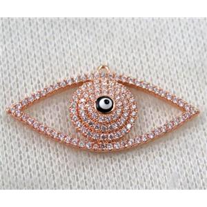 copper connector paved zircon with evil eye, rose gold, approx 30mm dia
