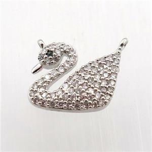 copper swan pendant paved zircon, platinum plated, approx 10-12mm