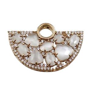 copper fan hollow pendant paved zircon with white crystal glass, gold plated, approx 20-35mm