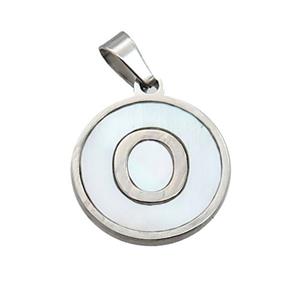• Raw Stainless Steel Pendant Pave White Shell Letter-O, approx 15mm dia