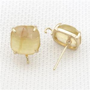 Copper Stud Earring Pave Jade Quartz Square Gold Plated, approx 11mm
