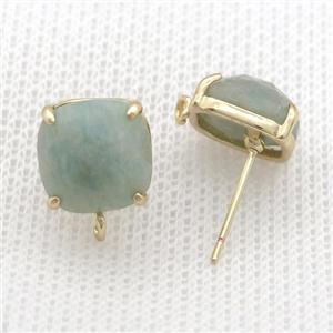 Copper Stud Earring Pave Green Amazonite Square Gold Plated, approx 11mm